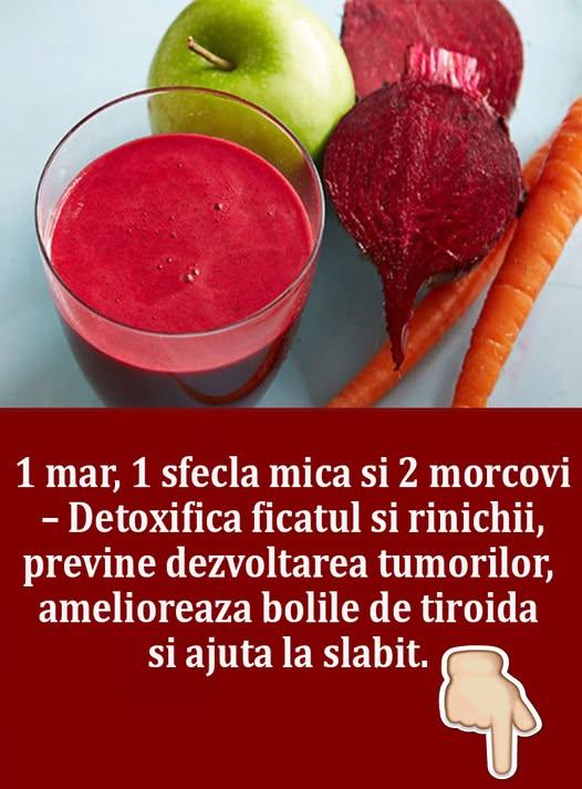 1 sfecla mica, 2 morcovi si 1 mar. Detoxifica ficatul si rinichii, previn dezvoltarea tumorilor, ajuta tiroida si multe altele. Cum se prepara si se consuma