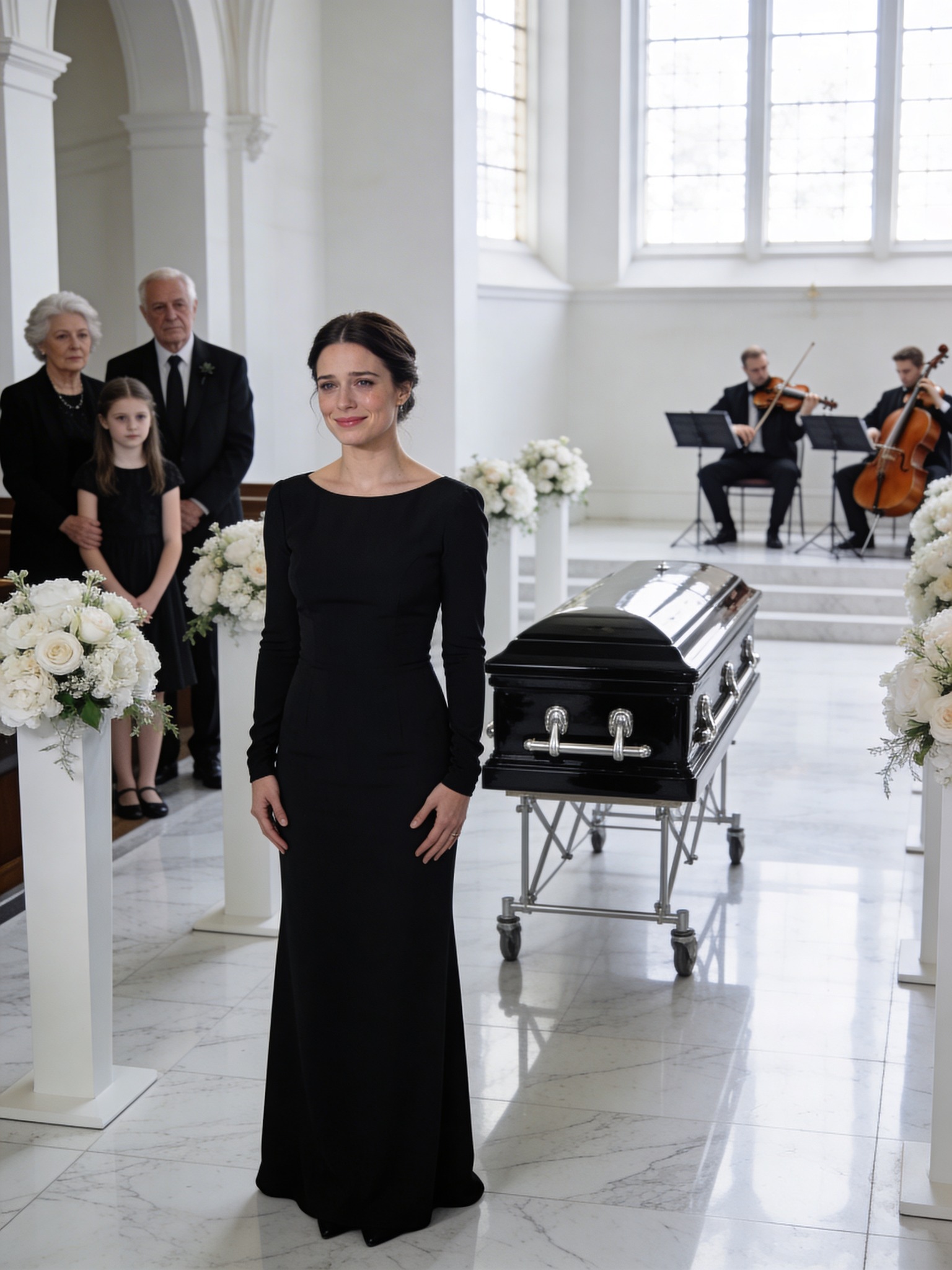 Mi-am netezit rochia neagră simplă cu degete calme, ascunzând în același timp un zâmbet slab care i-ar fi uimit pe toți cei prezenți dacă ar fi înțeles adevărul din spatele ei.