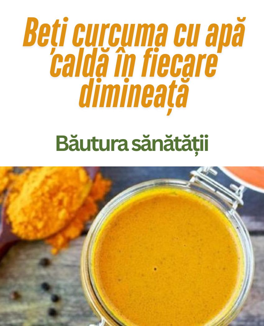Ai nevoie de ½ linguriță turmeric și 240 ml apă fierbinte. Amestecă bine și consumă băutura dimineața, preferabil înainte de masă. Pentru o absorbție mai bună a curcuminei, se recomandă să adaugi un vârf de cuțit de piper negru și, opțional, câteva picături de ulei de măsline sau cocos.