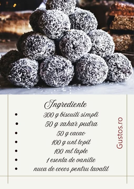 Incearca aceasta reteta simpla si rapida de bilute de biscuiti cu cacao si nuca de cocos. Un desert delicios, perfect pentru orice ocazie, usor de preparat si foarte gustos!