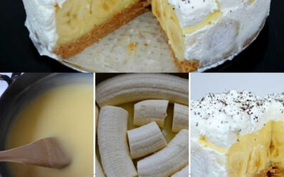 Tort cu banane, cremă de vanilie și frișcă: desert fără coacere, cu blat de biscuiți