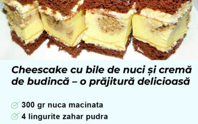 Cheescake cu bile de nuci și cremă de budincă – o prăjitură delicioasă, pe placul tuturor