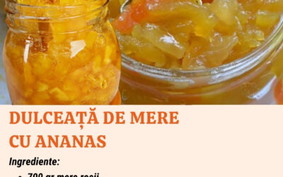 Dulceata de mere cu ananas, stafide si rom este preferata mea. Desi contine 50 ml rom, in timpul fierberii, alcoolul…