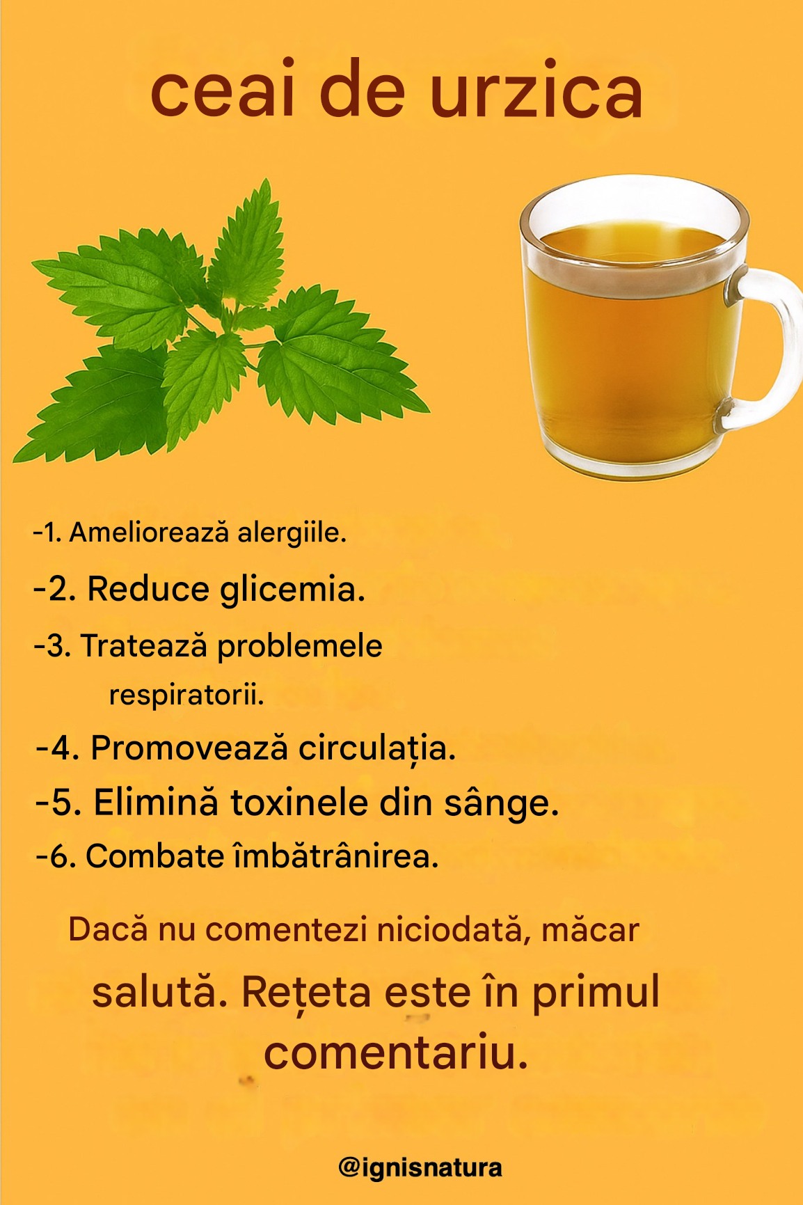 Este un ceai făcut cu urzică, o plantă pe care probabil o cunoști, dar poate nu știai că are aceste beneficii. Te va ajuta să arăți și să te simți bine în pielea ta, așa că nu rata rețeta.
