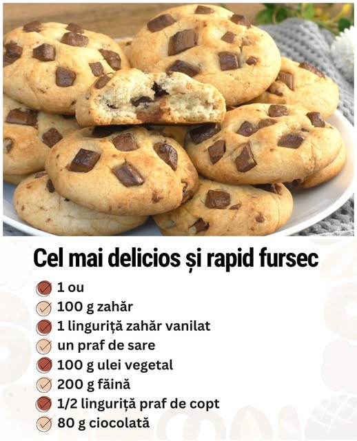 Astăzi vom pregăti un fursec delicios pentru ceai cu bucăți de ciocolată. Se face dintr-un set minim de ingrediente. Rețeta este foarte simplă și rapidă, nu va dura mai mult de 15 minute.