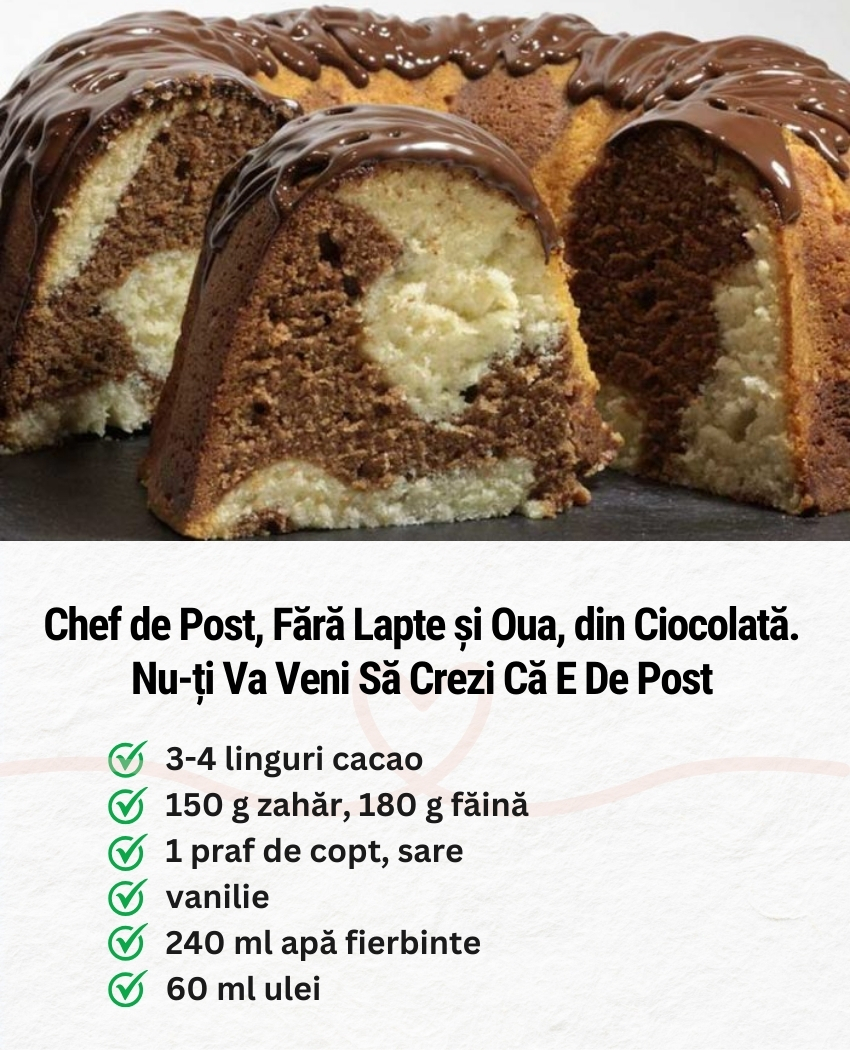 Rețetă excepțională de post, fără lapte și ouă – Chec de post, cu vanilie și ciocolată – Pentru a pregăti această rețetă, aveți nevoie de următoarele ingrediente: