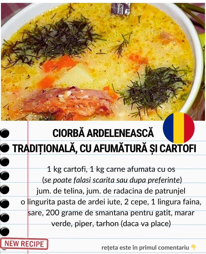 Această ciorbă ardelenească cu afumătură și cartofi reprezintă esența bucătăriei tradiționale transilvănene. Gustul intens al afumăturii combinat cu dulceața cartofilor și aroma delicată a tarhonului creează un preparat care încălzește sufletul în zilele reci. Perfectă pentru prânzuri de familie, această rețetă este plină de savoare și nostalgie, amintind de mesele de duminică de acasă.