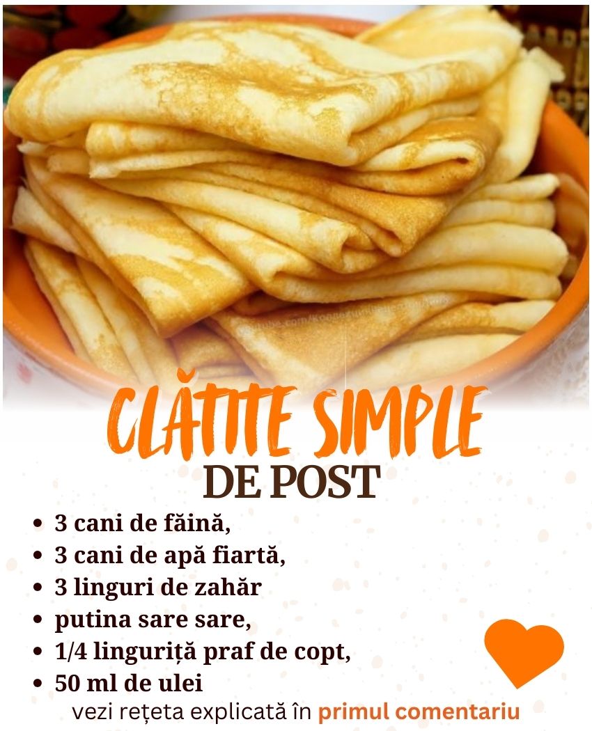 Această rețetă de clătite fără ouă și fără lapte este ideală pentru cei care țin post sau urmează o alimentație vegană. Sunt ușor de făcut, pufoase și gustoase, perfecte pentru a fi umplute cu gem, dulceață, fructe sau chiar compoziții sărate.