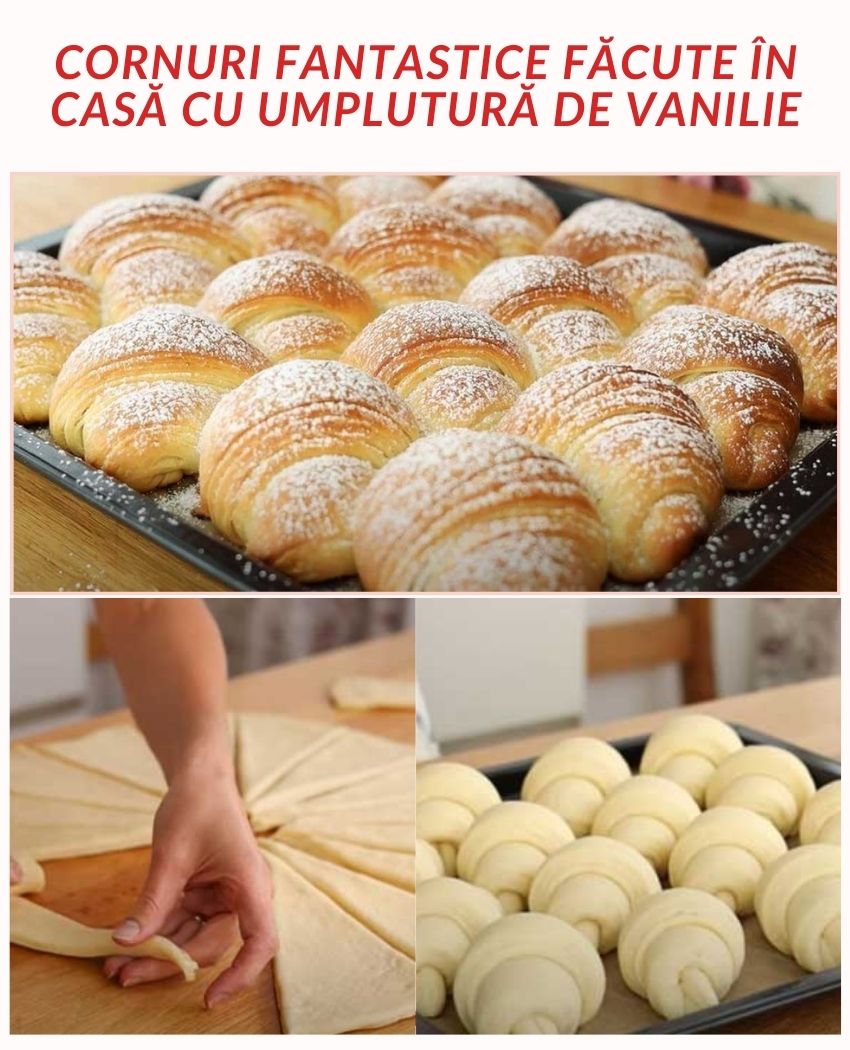 Cornuri ușoare, pufoase, făcute în casă, cu o umplutură bogată de vanilie – această delicatesă făcută în casă este minunata pentru a va indulci familia si musafirii.