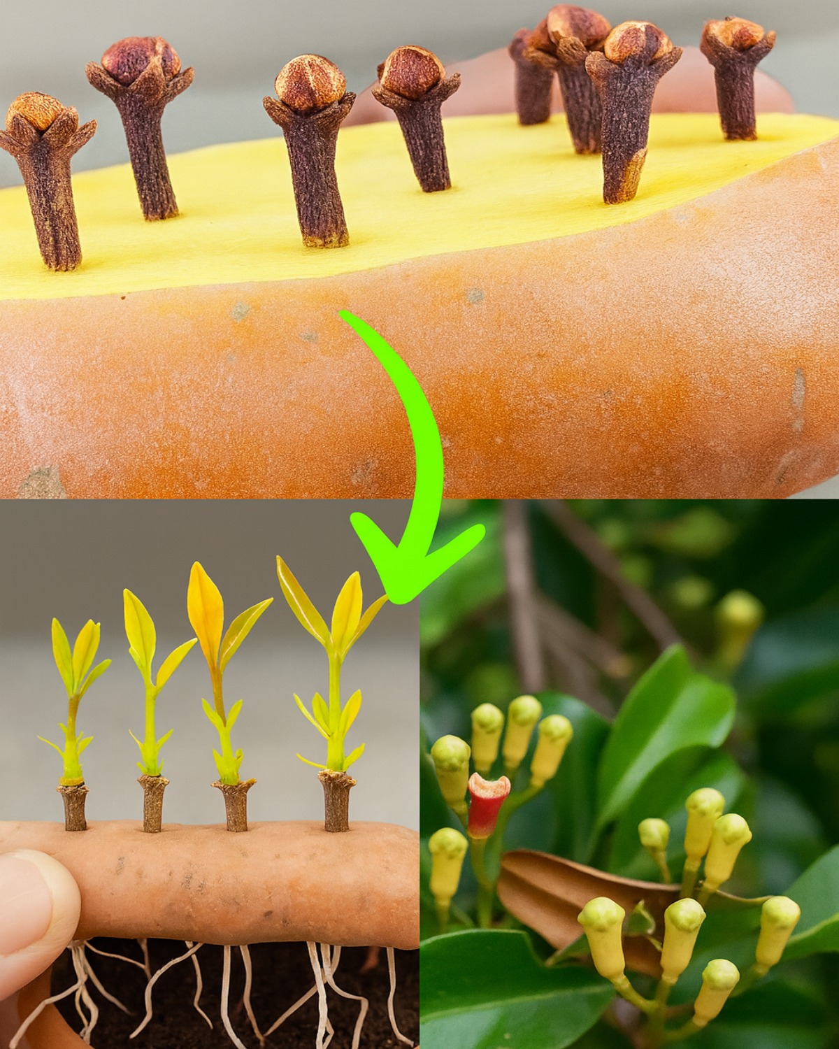 Așezați cuișoarele într-o bucată de cartof umed sau într-un mediu similar pentru a încuraja înrădăcinarea.