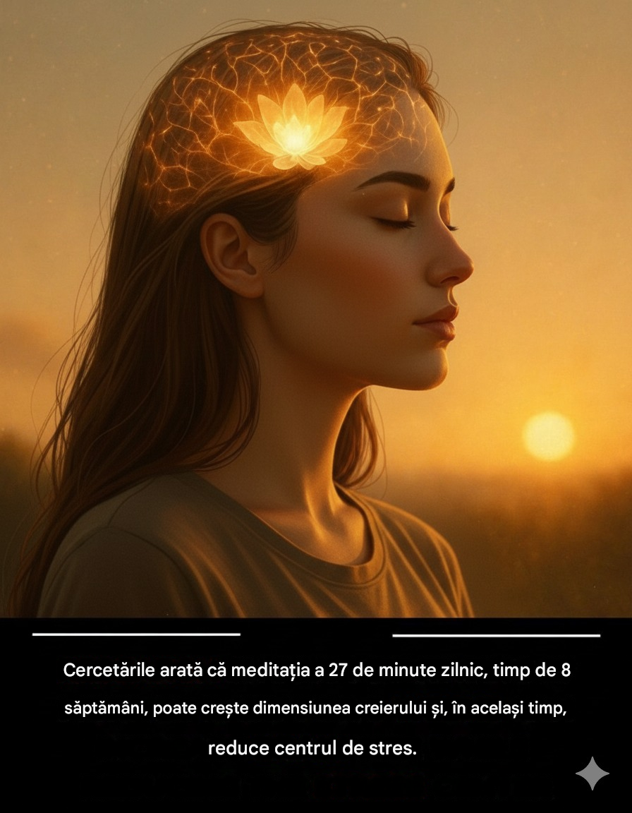 Un studiu inovator realizat de Universitatea Harvard și Spitalul General din Massachusetts a descoperit că 27 de minute de meditație zilnic, timp de 8 săptămâni, pot produce schimbări măsurabile în creier – inclusiv creșteri ale materiei cenușii și reduceri ale dimensiunii și activității amigdalei , centrul stresului și fricii din creier.