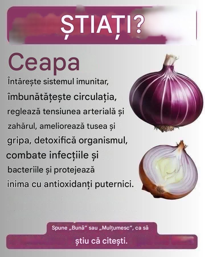 „Ceapa este super sănătoasă”, a spus Victoria Jarzabkowski, nutriționistă la Institutul de Fitness din Texas, la Universitatea din Texas, Austin. „Sunt surse excelente de vitamina C, compuși cu sulf, flavonoide și fitochimicale.”