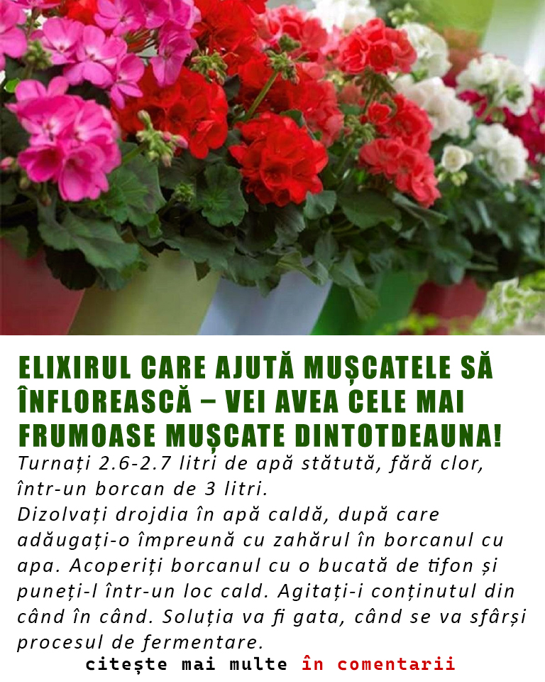 Am aflat despre acestă metodă simplă de la o doamnă, care lucrează la Grădina Botanică. Ea ne-a povestit-o, când a observat că nu ne mai putem dezlipi de mușcate. Inițial am crezut că glumește: presupuneam că plantele sunt tratate doar cu chimicale… Aparent, nu este așa…