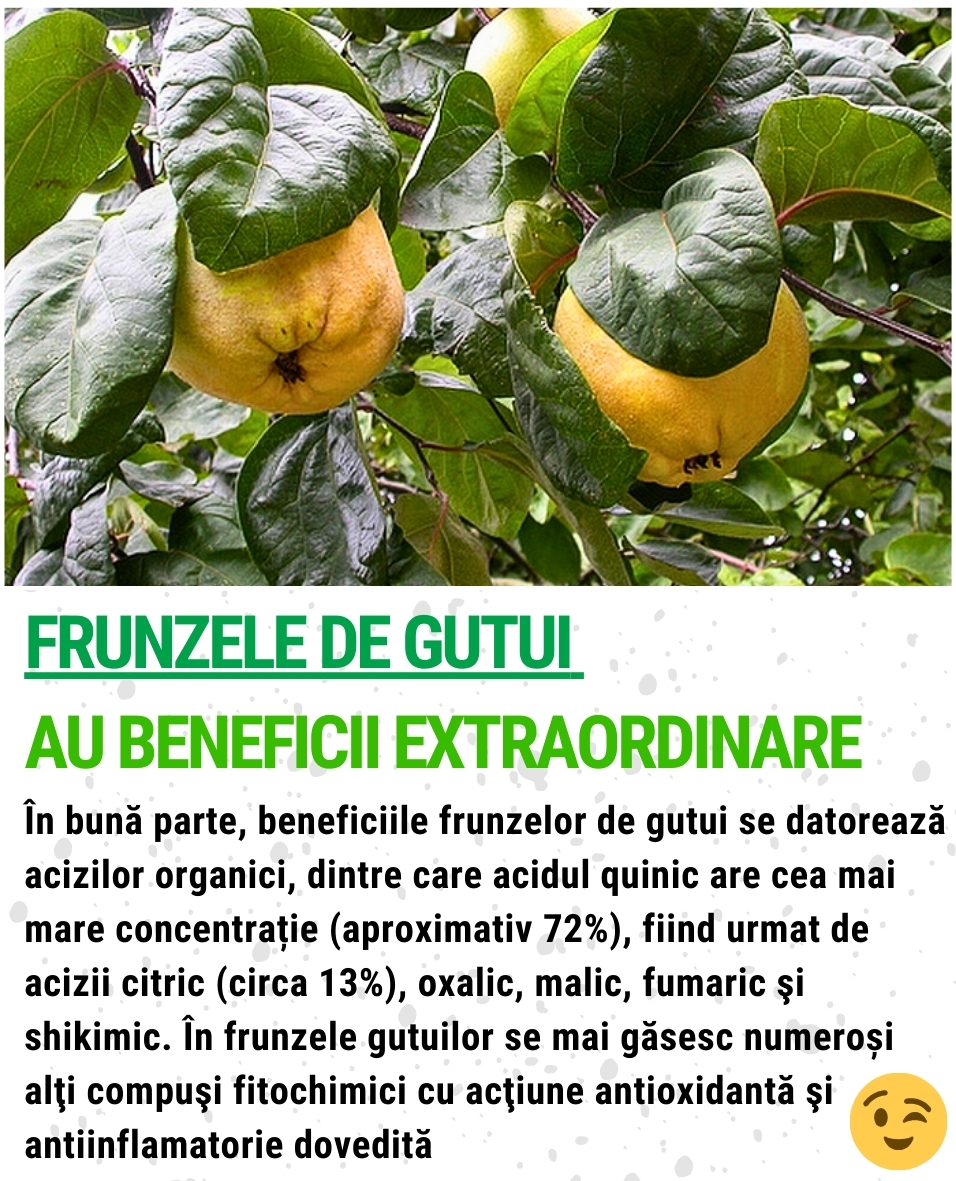 Frunzele de gutui au proprietati deosebite. Nu ezitati sa uscati frunze de gutui, pentru a face un excelent pentru tratarea diverselor afectiuni. De pilda, bolnavilor de hipertensiune le este recomandat, sa consume macerat din frunze de gutui, acesta reglând tensiunea arteriala.