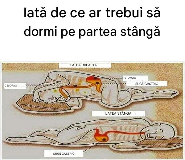 Dormitul pe partea dreaptă poate agrava problemele digestive, în timp ce dormitul pe partea stângă poate îmbunătăți simptomele digestive.