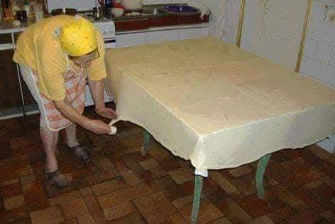 În copilărie, aveam o pasiune păcătoasă, îmi plăcea să ciugulesc tot felul de aluat crud. Așa că am fost curând disponibil să ajut la frământarea oricărui tip de aluat fiert sau dospit. Prima masă independentă din viața mea, după ouăle amestecate, a fost aluat de mac. Prepararea ștrudelului adevărat de casă era un act comunitar în casa noastră, îmi amintesc cum bunica mea scotea masa mare și scotea din dulap pânza albă ca zăpada pentru ștrudel. Pentru că fiecare țărăncă avea propria față de masă, care era strict din in, cu făina strălucind albă ca zăpada pe ea. Era important să nu alunece și să nu existe niciun model pe ea.