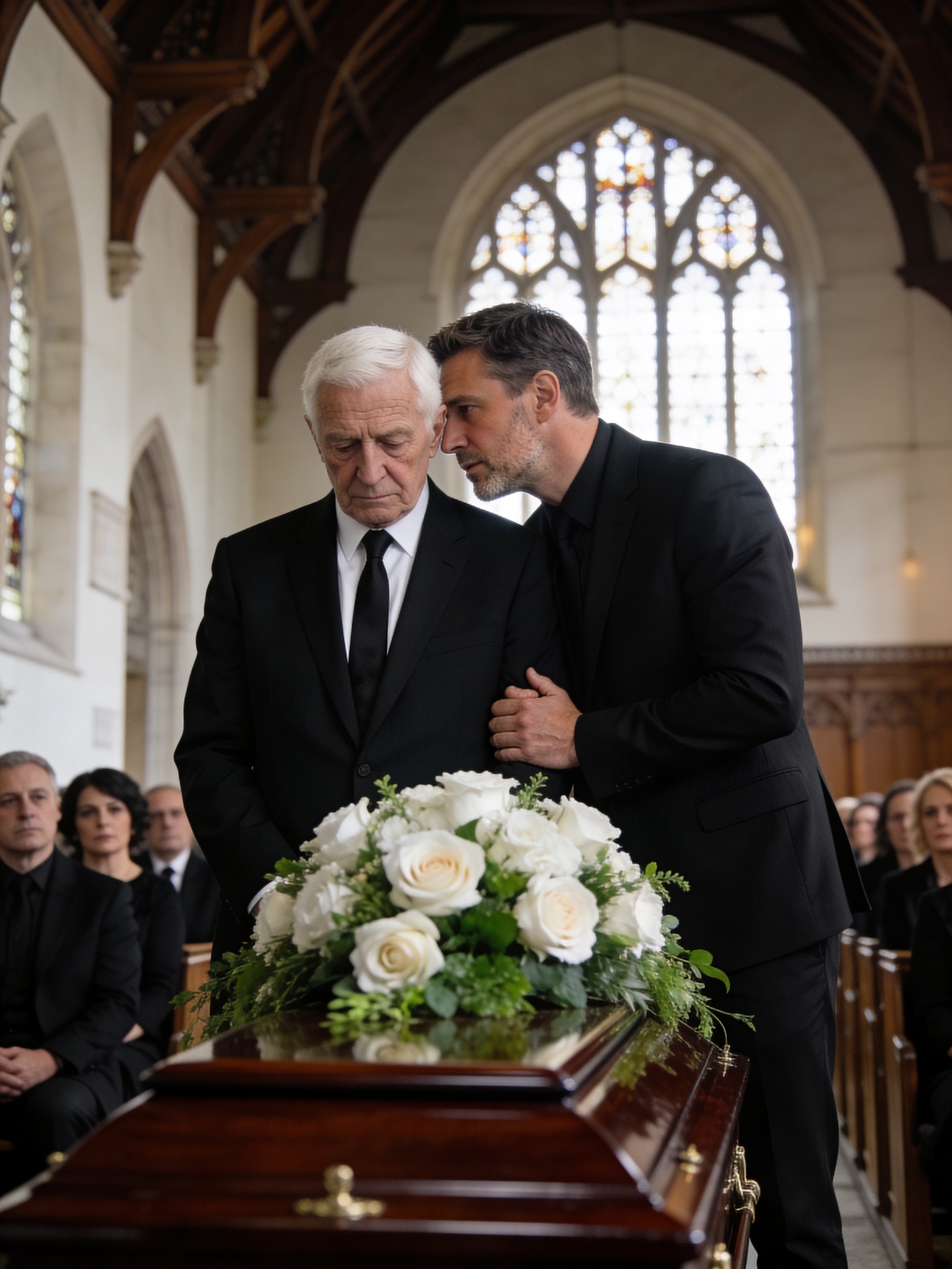 Biserica dintr-un orășel liniștit din Vermont era plină de oameni, colegi, vecini, rude îndepărtate și fețe necunoscute care veniseră să-și ia rămas bun. Altarul era umplut cu flori, în nuanțe de alb pal și roz pal, în timp ce lumânările pâlpâiau de-a lungul zidurilor de piatră, iar orga cânta un imn lent care părea să prelungească timpul însuși.
