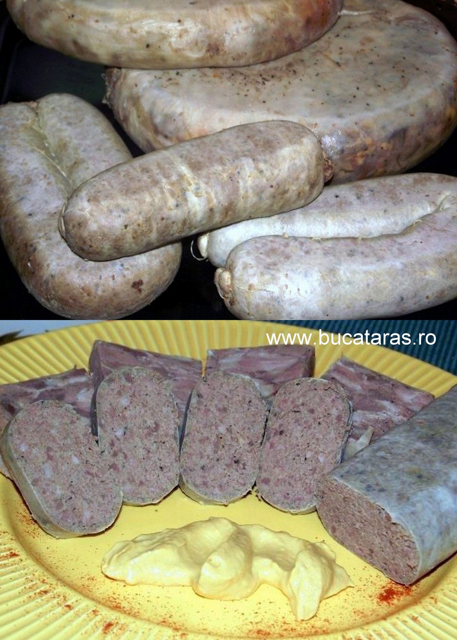 ( - carne cu grasime de la 1/2 cap de porc, cu tot cu ureche - gusa de porc - sorici - limba - inima rinichi de porc - splina )