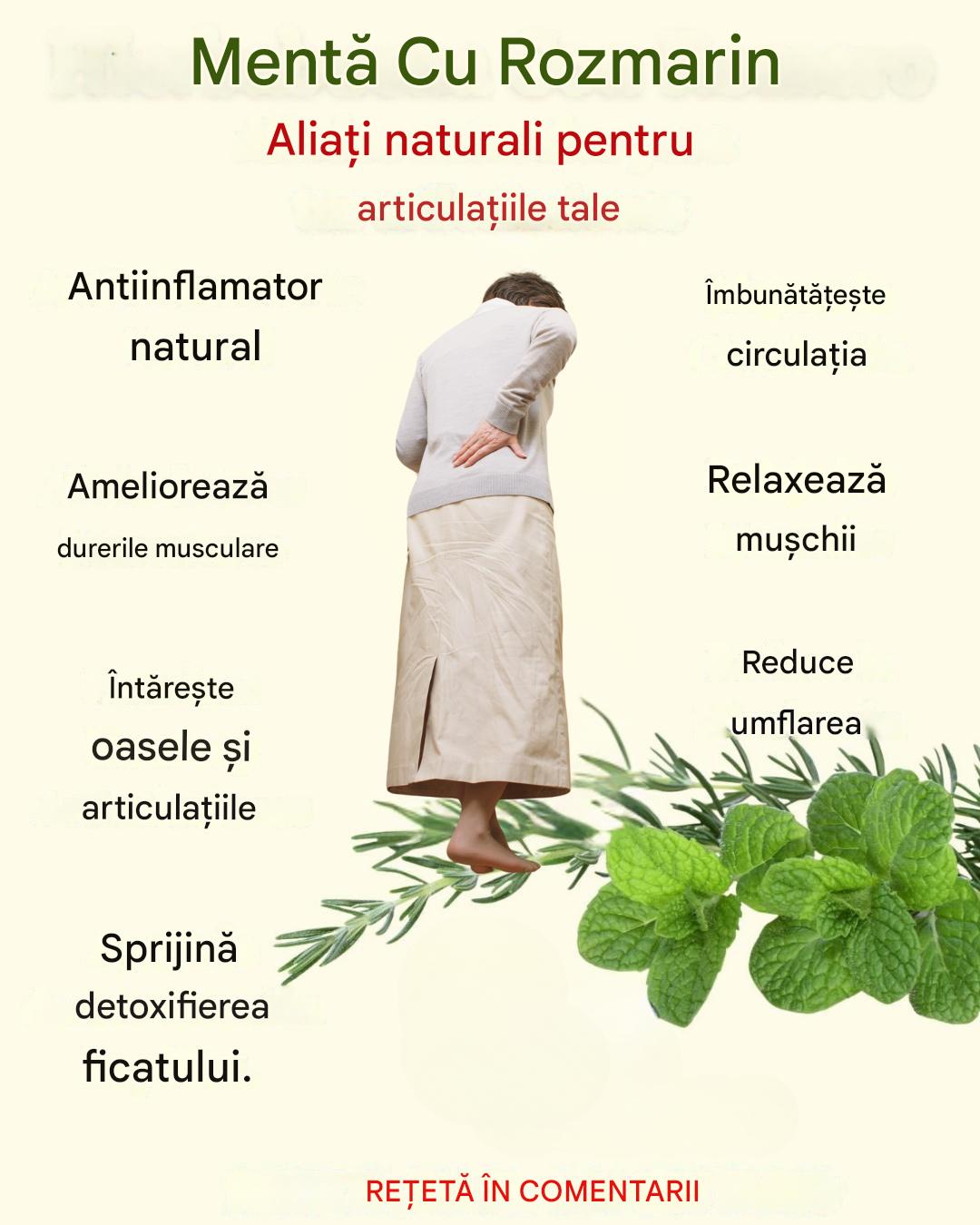 Durerile articulare pot deveni un obstacol zilnic pentru mulți oameni, mai ales atunci când afectează zone precum genunchii, șoldurile sau cartilajele. Dacă sunteți în căutarea unei soluții naturale care nu se bazează pe medicamente, combinația de mentă creață și rozmarin poate fi exact ceea ce aveți nevoie. Aceste două plante medicinale, cunoscute de generații, posedă proprietăți terapeutice capabile să amelioreze eficient inflamația și disconfortul articular.