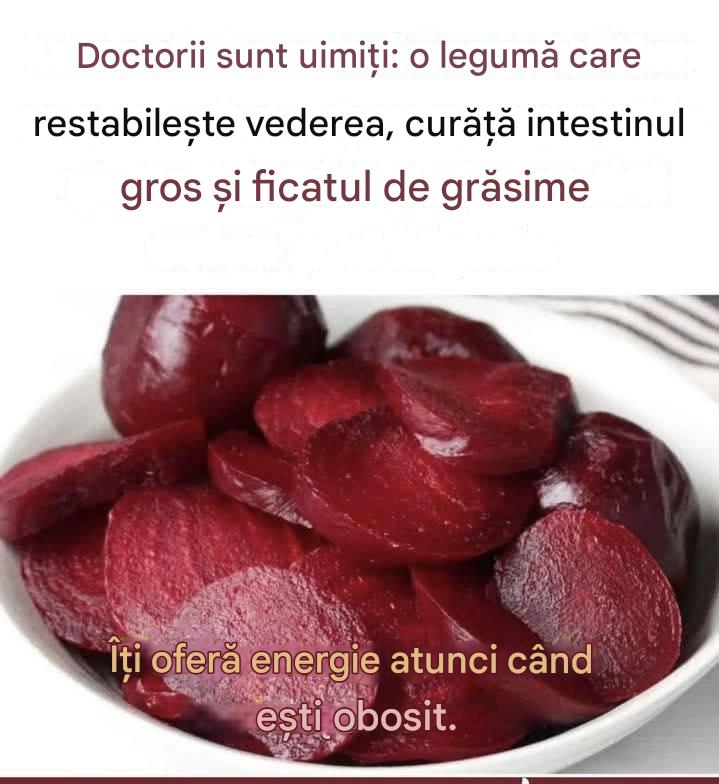 Natura are o soluție simplă pentru aceste probleme, pe care o vom împărtăși cu voi. Dacă doriți să rămâneți tineri și vibranți mai mult timp, trebuie să mâncați mai multă sfeclă roșie! Sfecla roșie este o legumă roșiatică care poate fi consumată crudă în salate sau adăugată în smoothie-uri și shake-uri. Poate că nu are cea mai intensă aromă, dar este mai sănătoasă și mai nutritivă. Ingrediente: