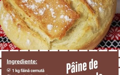 REȚETA Ingrediente:1 kg făină cernută10 gr drojdie uscată650-680 ml apa călduță20 gr sare40 ml ulei floarea soarelui sau de măslinePreparare:Pentru…