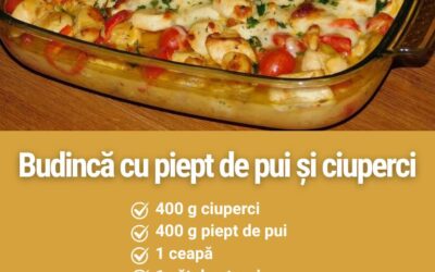 Budincă cu piept de pui, legume și ciuperci – Aveți nevoie de 400g piept de pui, 400g ciuperci, 250 ml lapte și…