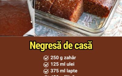 Rețeta pe care o căutam de multă vreme, foarte delicioasă – Negresă de casă Ingrediente necesare: 250 g zahăr 125…