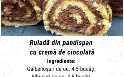 Rulada din pandispan cu cremă de ciocolată este un desert delicios, care combină un blat pufos de pandispan cu o…