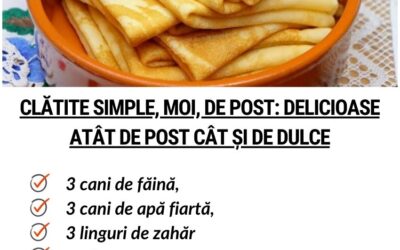 Această rețetă de clătite fără ouă și fără lapte este ideală pentru cei care țin post sau urmează o alimentație…