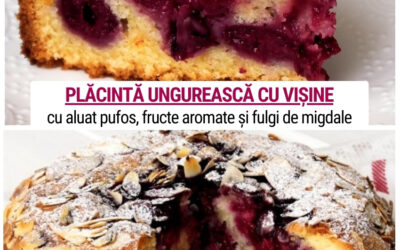Plăcintă ungurească cu vișine: cu aluat pufos, fructe aromate și fulgi de migdale