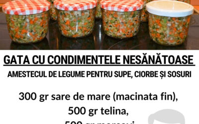 Amestecul de legume pregatit dupa aceasta reteta, este foarte bun si imbogateste gustul supelor si a ciorbelor. In doar jumatate…