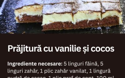 Prăjitură la tavă cu cremă de vanilie și cocos – Se prepară din 10 linguri făină, 10 linguri zahăr, 4…