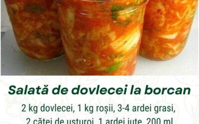 In fiecare iarna, in camara mea gasesti cateva borcane cu salata de dovlecei. De cand am primit aceasta reteta simpla,…