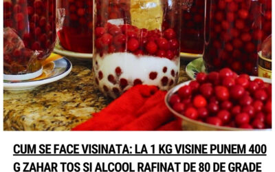 Cum se face visinata – La 1 kg de visine punem 400 g de zahar tos si alcool rafinat de 80 de grade