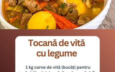 Ingrediente necesare: 🥩 1 kg (bucăți pentru tocăniță) 🫒 🧅 1 ceapă 🥬 1 fir de praz 🥕 1 morcov 🫑 1 ardei gras 🍅 250…
