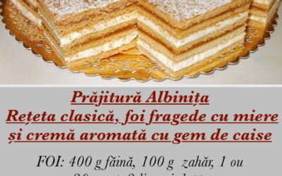 Ingrediente necesare pentru foi: 400 g făină 100 g 1 ou 30 g unt 2 linguri lapte 1 linguriță bicarbonat…