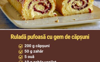 Ruladă cu căpșuni Rețeta mai jos Ingrediente pentru gem:200 g căpșuni50 g zahăr50 ml apă1 lingură amidon de porumb30 ml apăIngrediente pentru…