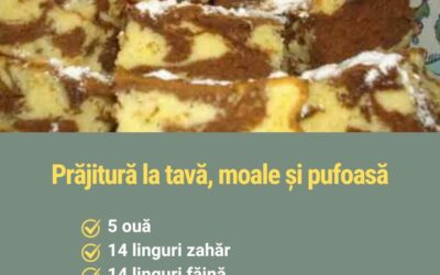 Rețetă de prăjitură marmorată Ingrediente Ingrediente: 5 ouă 14 linguri zahăr 14 linguri făină 14 linguri lapte 12 linguri ulei 1 plic praf de copt 1 plic zahăr vanilat 2…