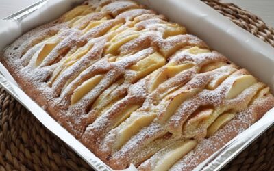 2 uova intere100 g de zucchero200 g farinaMezza bustina di lievito70 g of burro1/2 bicchiere di latte2 mele tagliate a…
