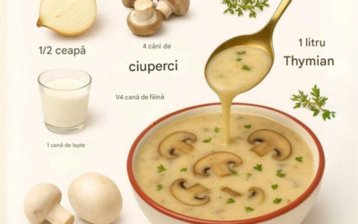 Ingrediente (aproximativ 4 porții): ½ ceapă, tocată mărunt 2 căței de usturoi, tocați mărunt 4 căni de ciuperci (aproximativ 300g),…