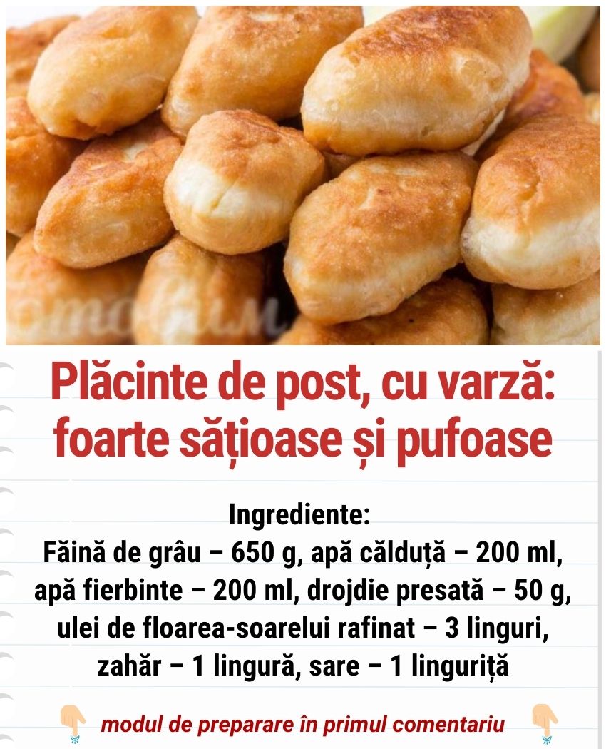 Cu siguranță vă va plăcea această rețetă de placinte de post (sau pateuri, daca vreti sa le spuneti asa). Pateurile ies pufoase și gustoase, și nu se învechesc chiar și a doua zi. Un asemenea snack delicios va fi apreciat de întreaga familie! Și de asemenea, puteți găti încrezător aceste pateuri în timpul postului pentru a diversifica meniul.