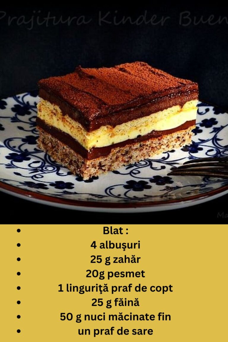 Prăjitura Kinder Bueno este un desert perfect pentru ocazii speciale, dar suficient de simplu de preparat pentru un weekend obișnuit. Combinația de blat pufos cu nucă și crema fină, bazată pe vanilie și ciocolată, o face irezistibilă. Iată rețeta completă, pas cu pas!