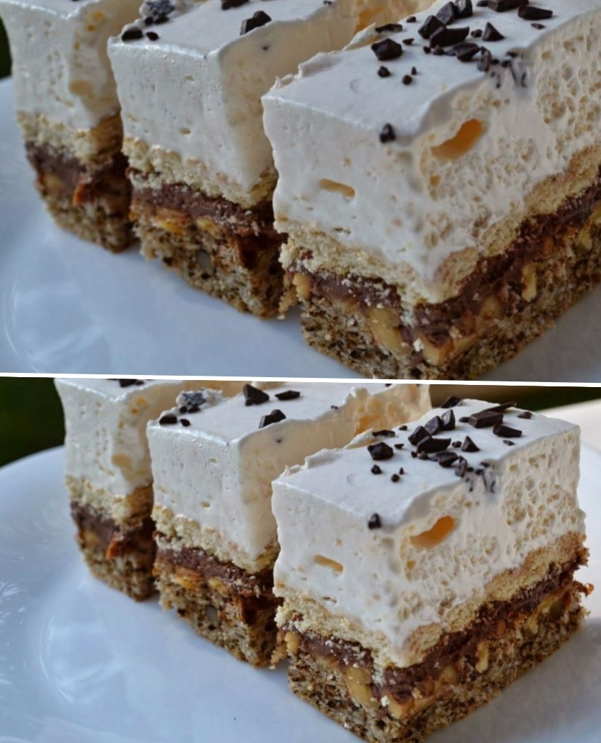 Pentru blat: 2 cani de nuca prajita, 7 albusuri, 7 lg zahar, 7 lg nuca macinata, 3 lg faina, 1 praf de copt