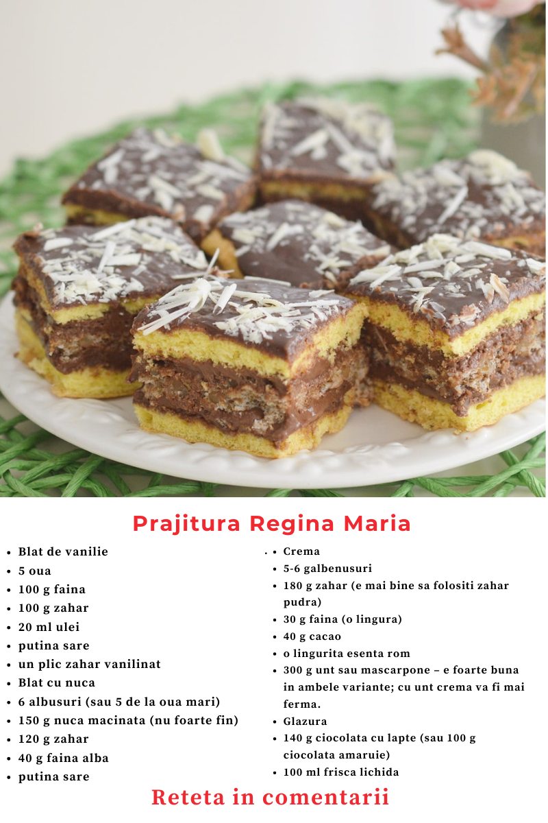 Nu stiu de unde-i vine denumirea – Prajitura Regina Maria – dar stiu ca ma bucur c-am incercat-o. Un gust dede casa autentic, o prajitura fina pe care cu siguranta o voi repeta si cu alte ocazii. Pare sofisticata dar nu e deloc greu de facut. Eu iubesc prajiturile cu nuca.