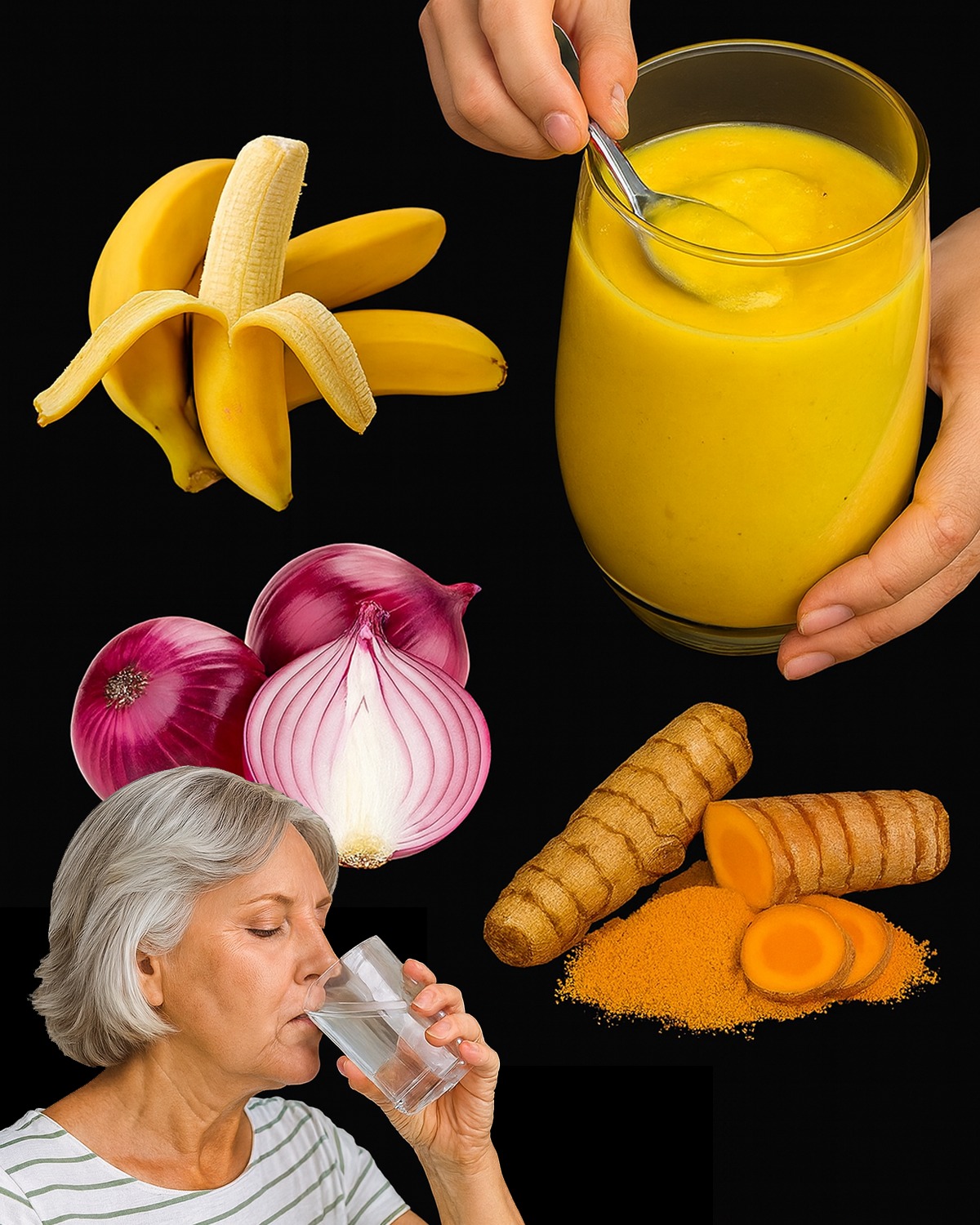 Remediul casnic cu banană, ceapă și turmeric pe care mii de seniori mexicani îl folosesc pentru a se ridica fără dureri de genunchi, șold și spate!