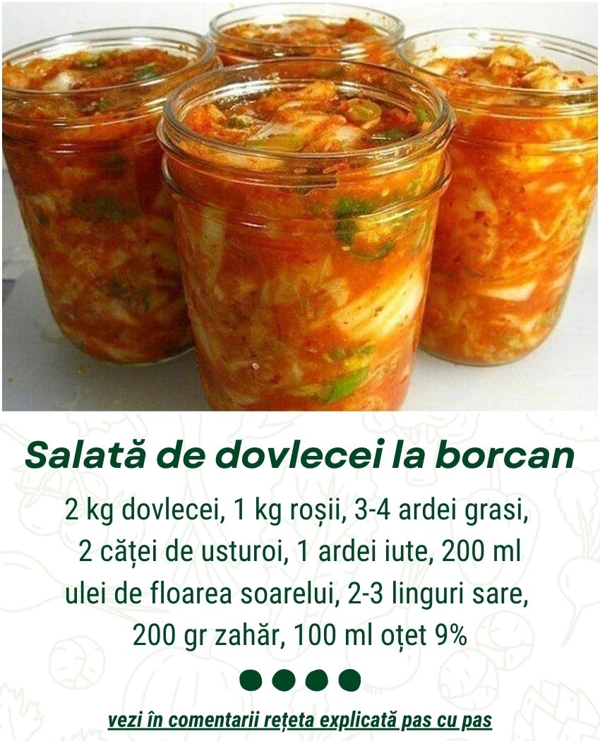 In fiecare iarna, in camara mea gasesti cateva borcane cu salata de dovlecei. De cand am primit aceasta reteta simpla, dar delicioasa, de la soacra mea, o prepar in fiecare an. Nu este deloc complicata, iar rezultatul este exceptional. Salata de dovlecei are un gust minunat.