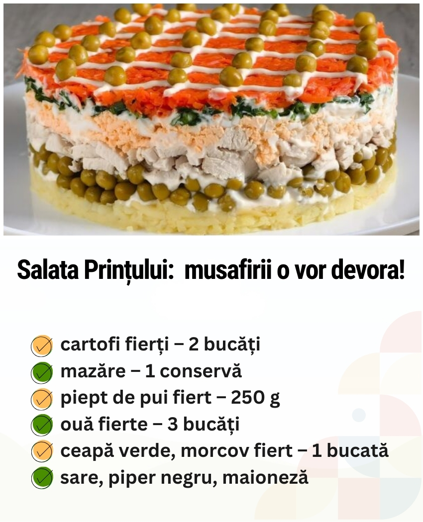 Salata „Prințului” este o alegere perfectă pentru orice masă festivă. Cu un amestec de ingrediente simple, dar gustoase, acest salat devine un adevărat favorit al familiei.