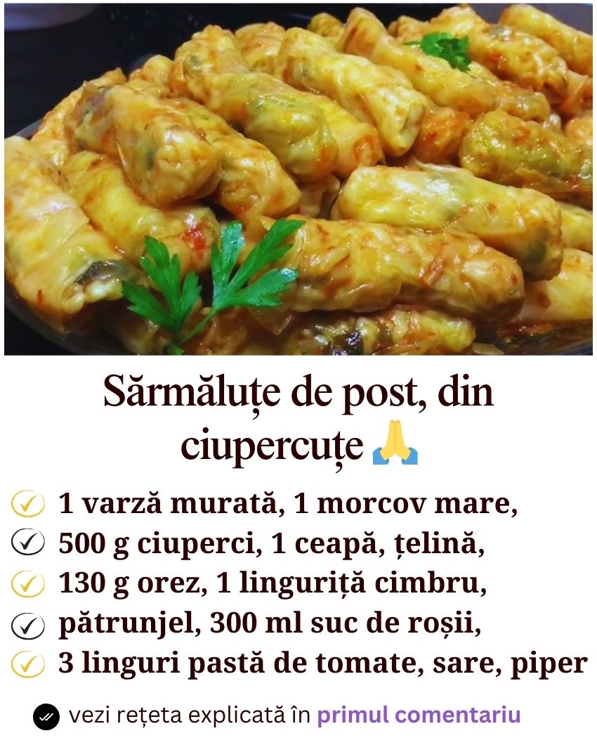 Sărmăluțe de post din ciuperci – un deliciu culinar perfect pentru orice masă! Aceste mici bijuterii de post, preparate cu ciupercuțe și legume proaspete, aduc savoarea tradițională într-o formă vegetariană absolut delicioasă.