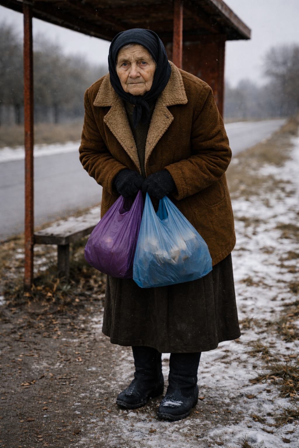 În stația mică de la marginea satului, sub o copertină ruginită, stătea o bătrânică.